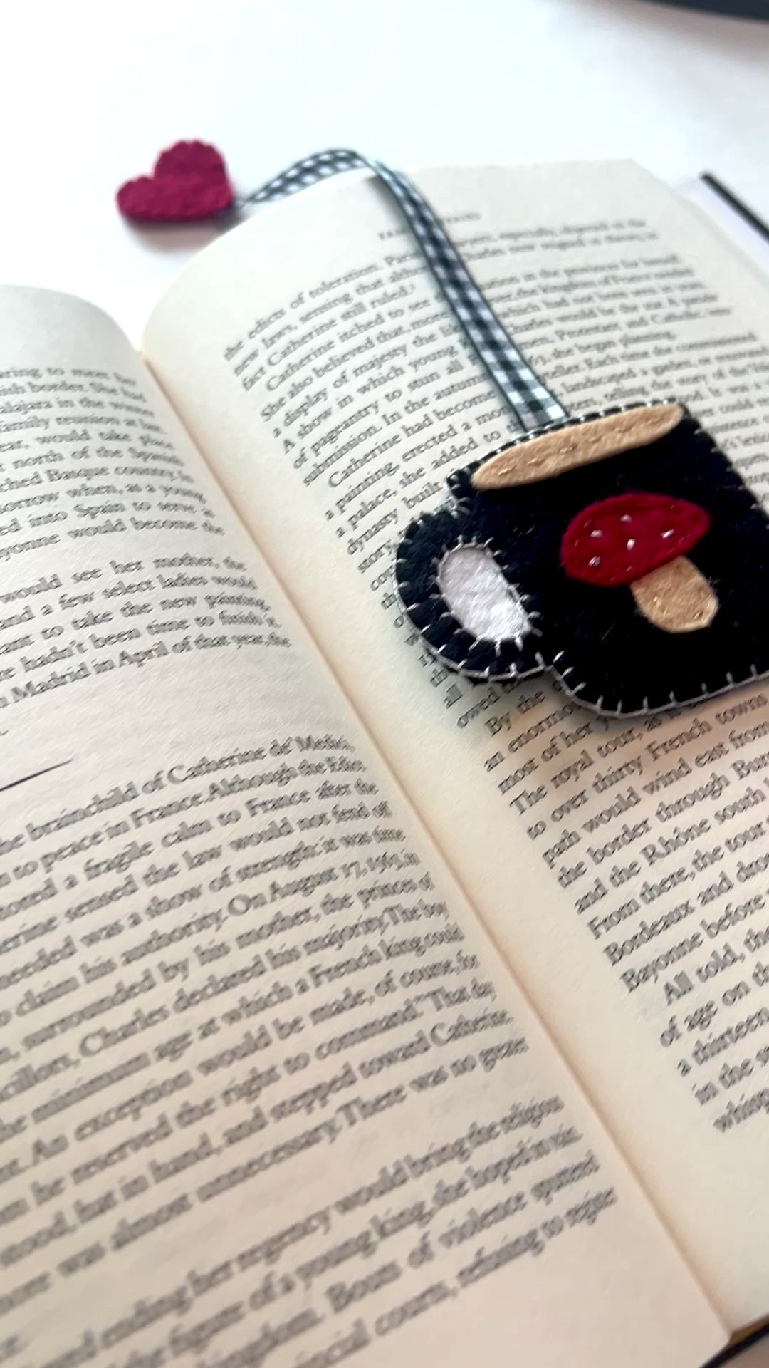 Handmade with quality wool blend felt. Slow made, hand cut pieces all stitched by hand. Coordinating gingham ribbon for cuteness factor. Choose your favorite, coffee or tea. The perfect gift for all the book nerds on your holiday list!