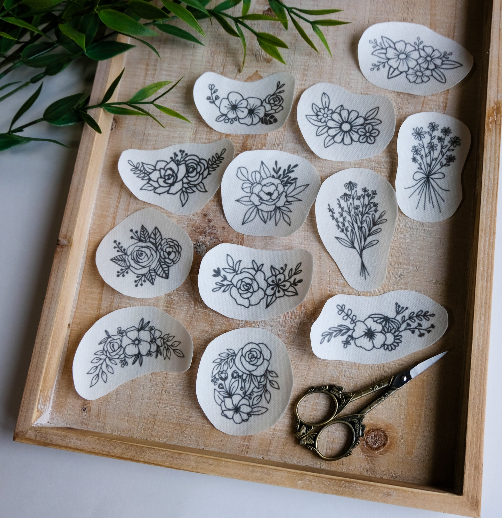 Create your own floral themed art with these Stick and Stitch Stickers! So simple to use and beginner friendly. These have so many uses in addition to hoops. Embellish clothing, pillows, tote bags, and more with these versatile designs. These are so easy to use and wash off clean.