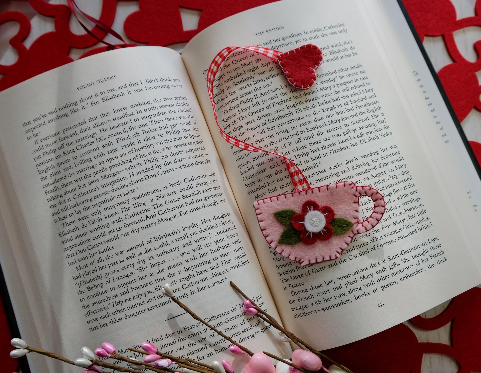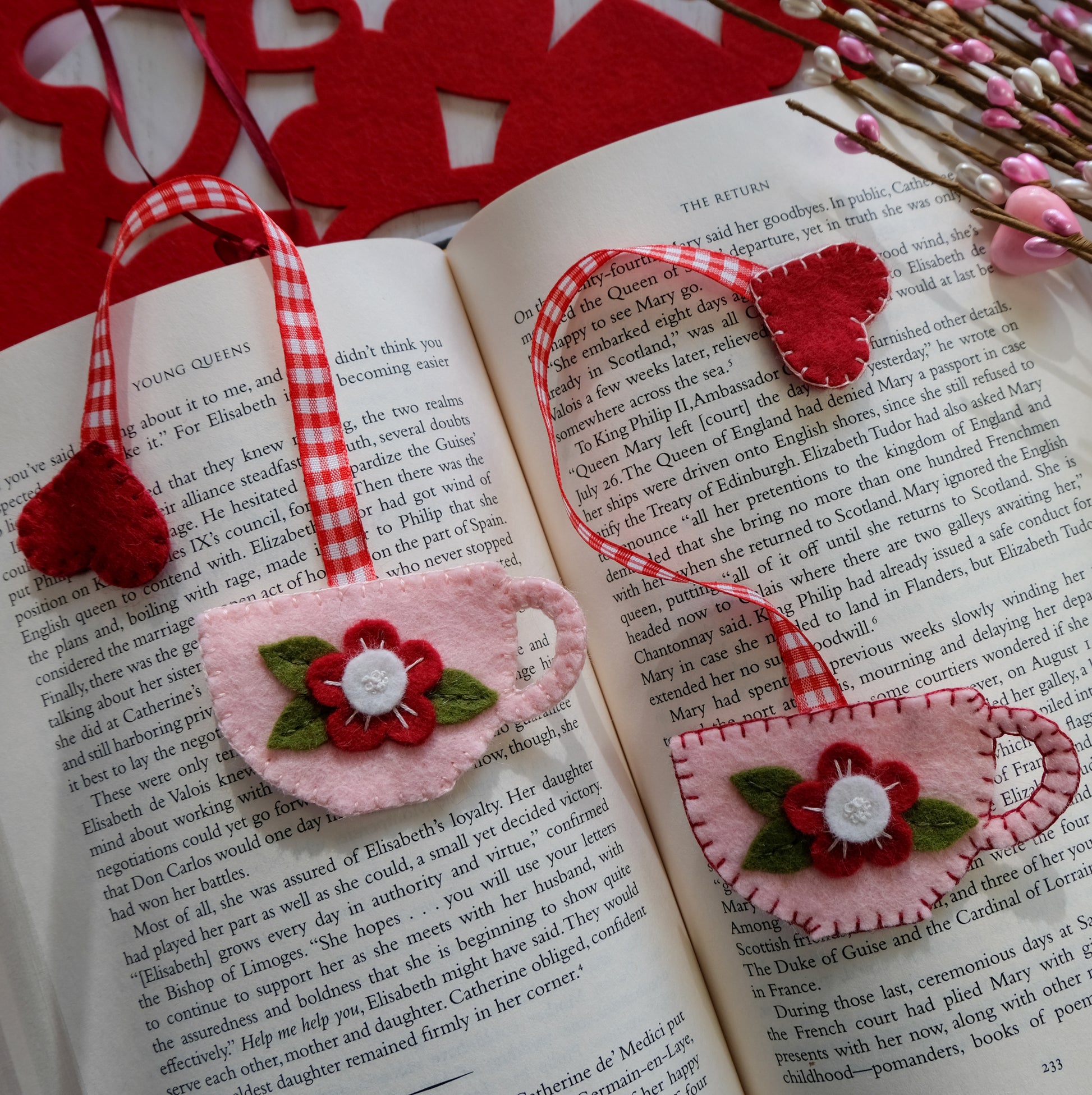 Teacup Wool Felt Valentine Bookmark Flower and Heart